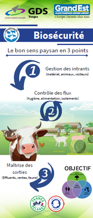 Le GDS des Vosges met à disposition des panneaux « biosécurité » permettant d’identifier les secteurs réglementés, afin de limiter les risques de diffusion et transmission de maladies infectieuses.